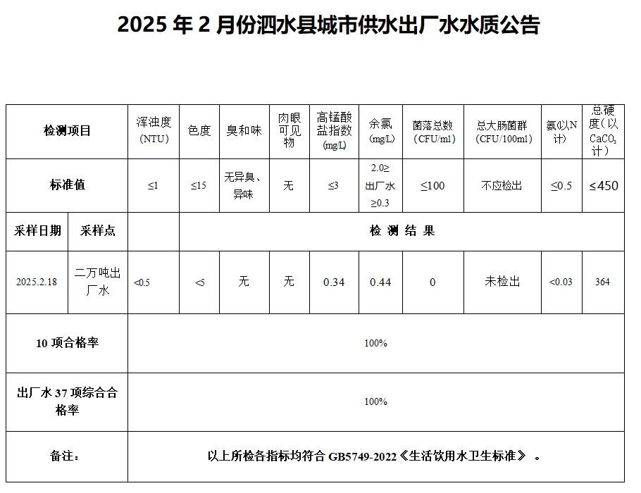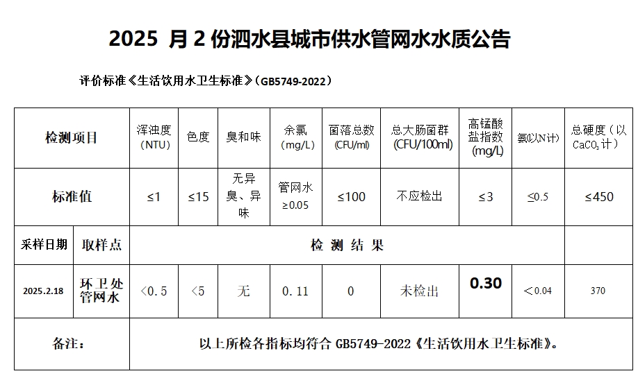 2025年2月份水质检测报告