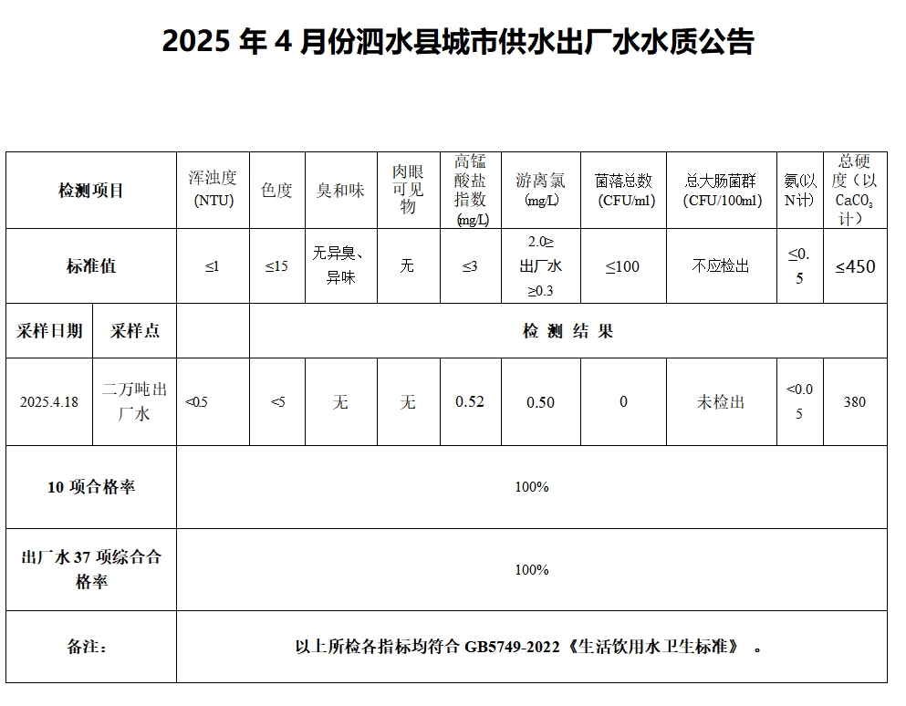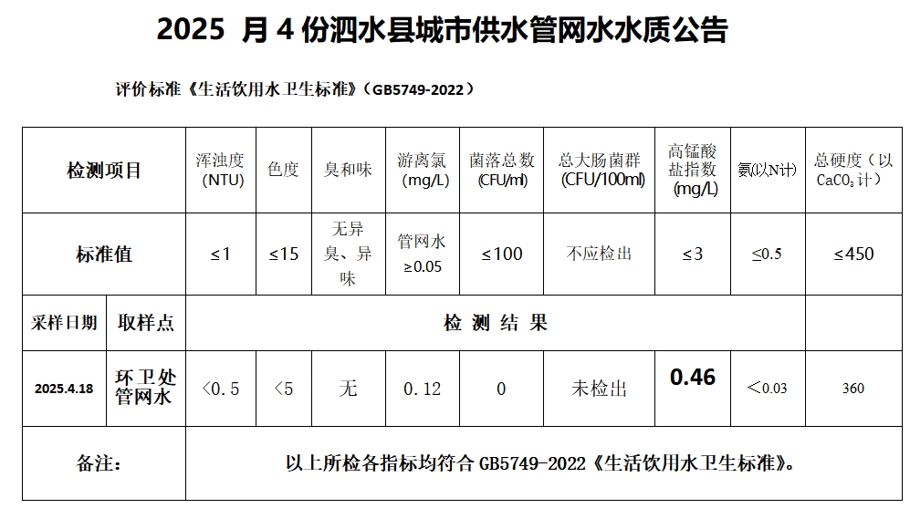2025年4月份水质检测报告