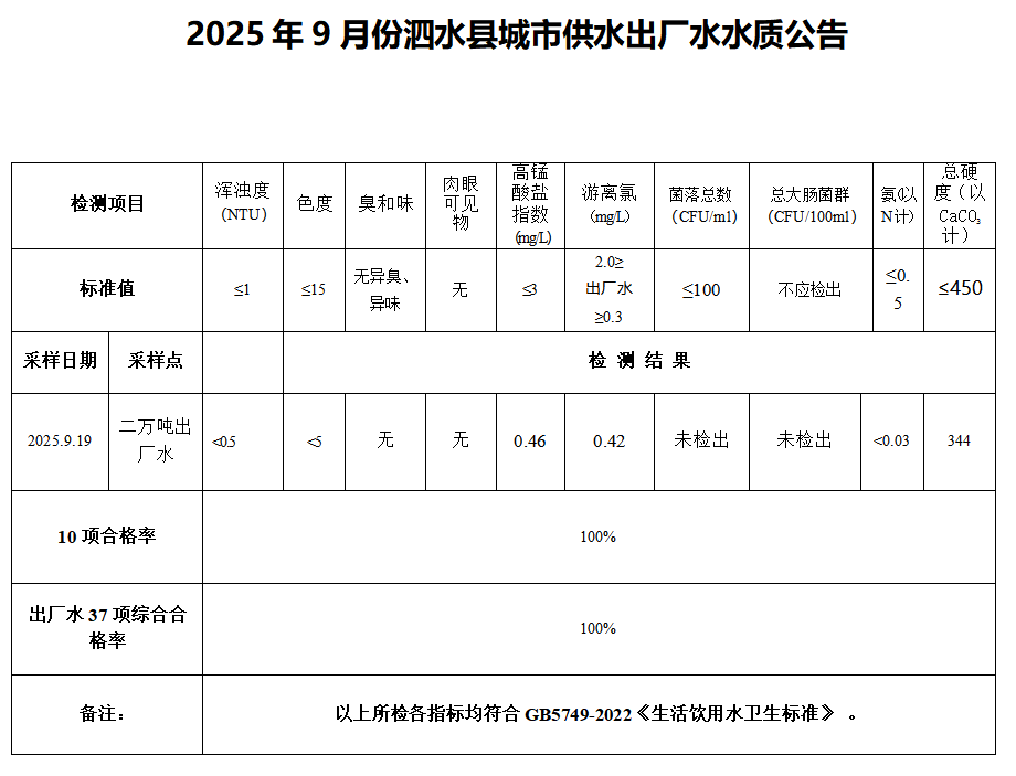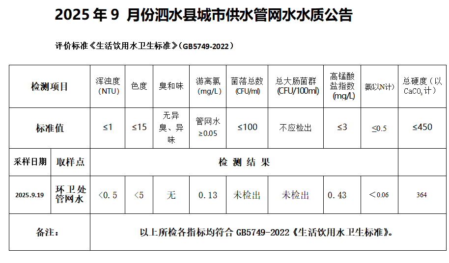 2025年9月份水质检测报告