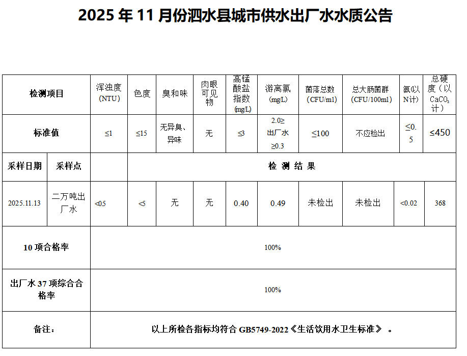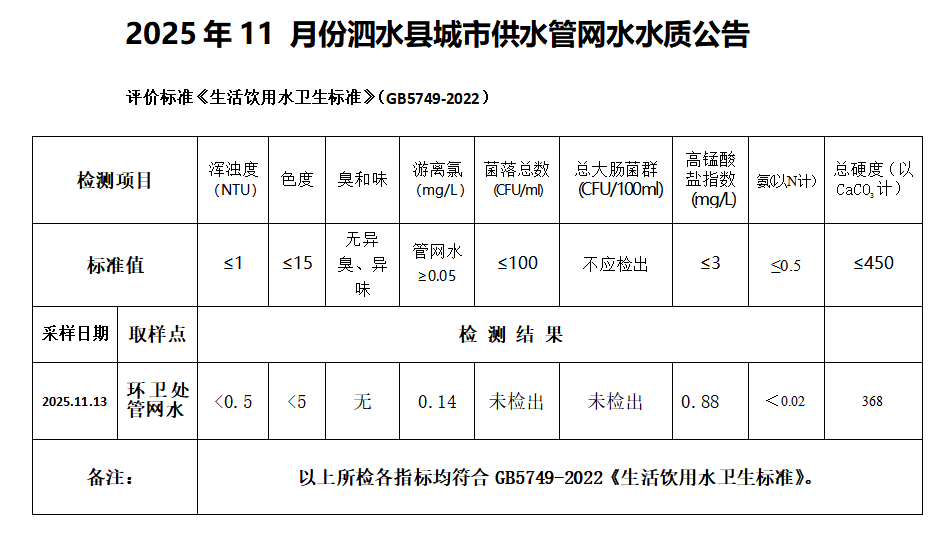 2025年11月份水质检测报告