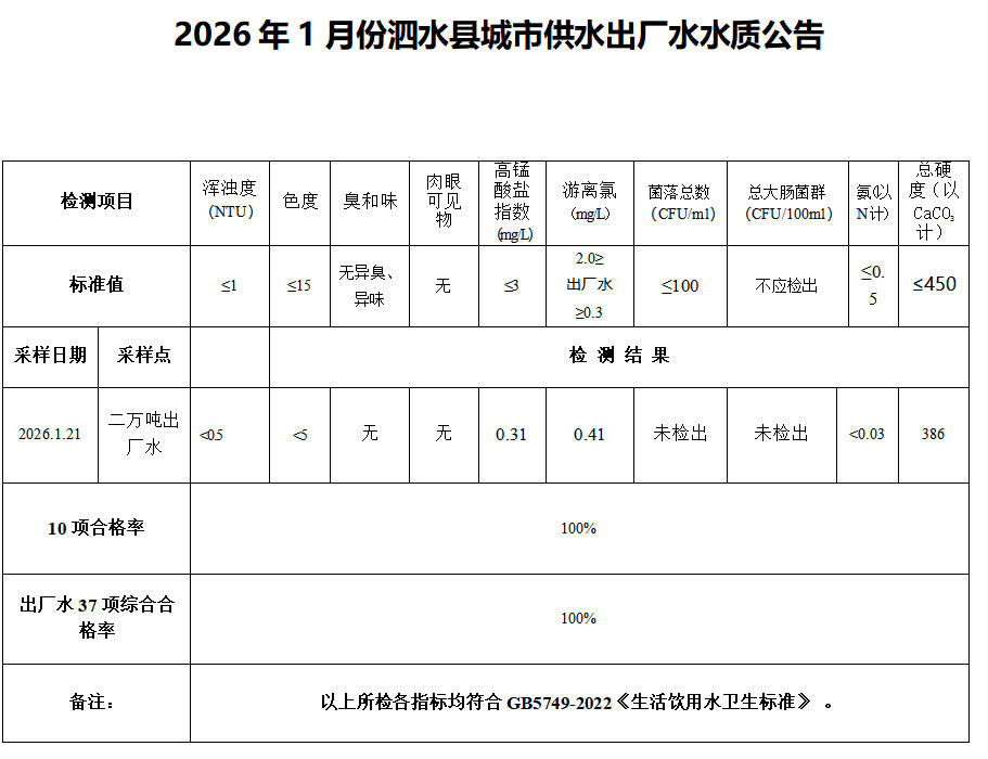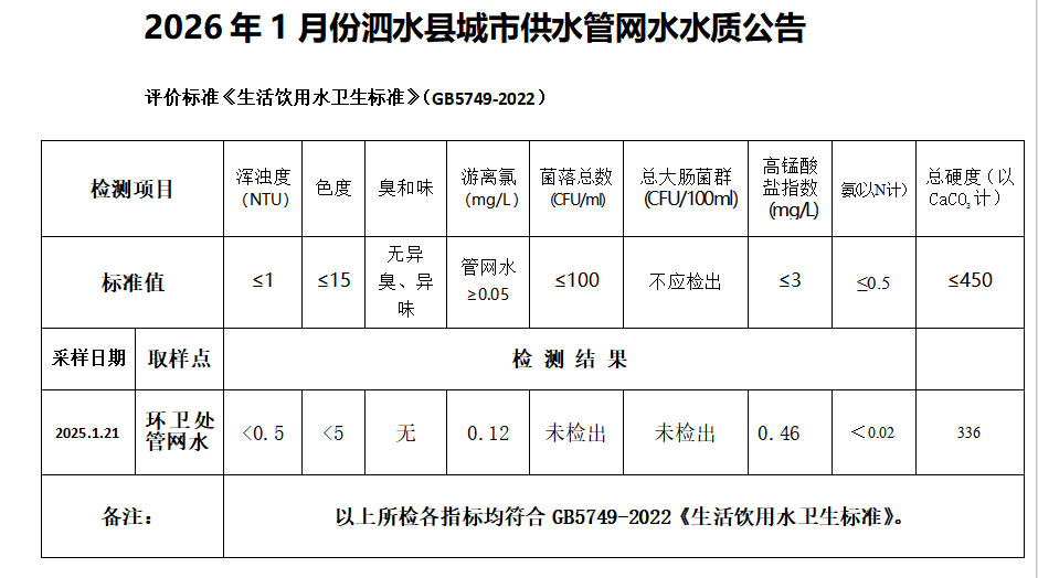 2026年1月份水质检测报告